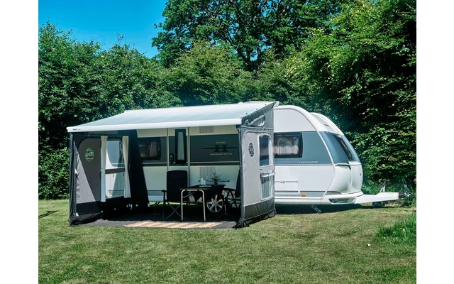 Kompletteinheit mit linker und rechter Seitenwand. Diese Seitenwände können einzeln, z.B. nur als Windschutz, oder mit einer Buddy Front zu einem kompletten Markisenvorzelt kombiniert werden.